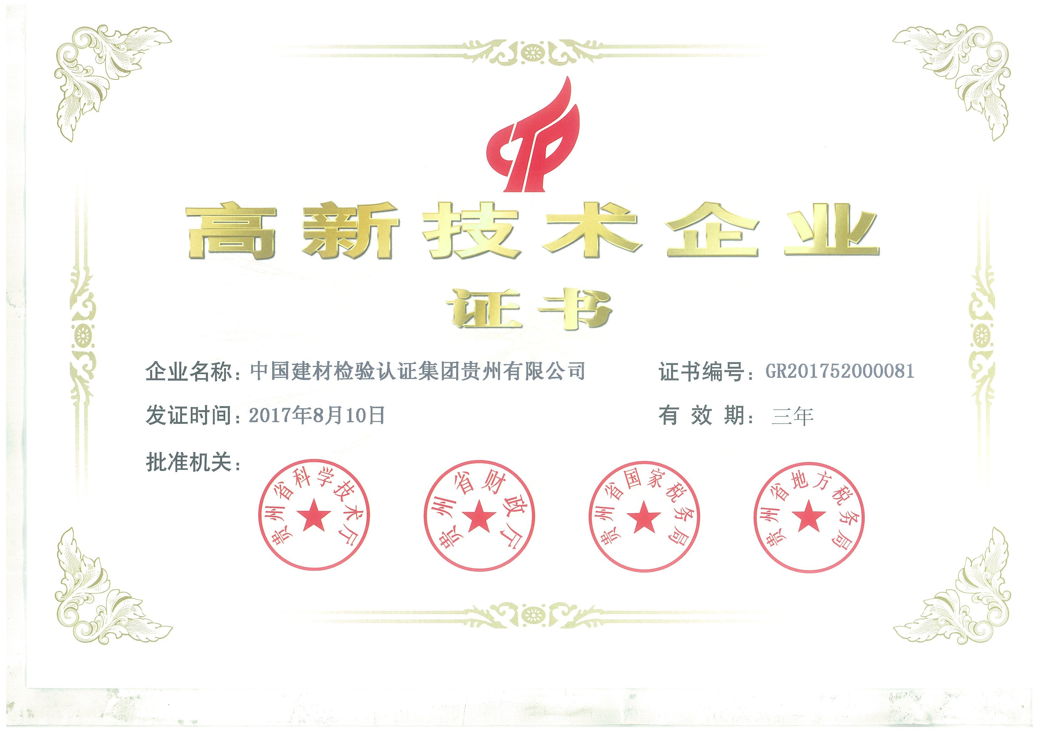 高新技術(shù)企業(yè)證書