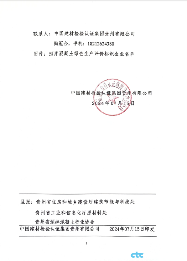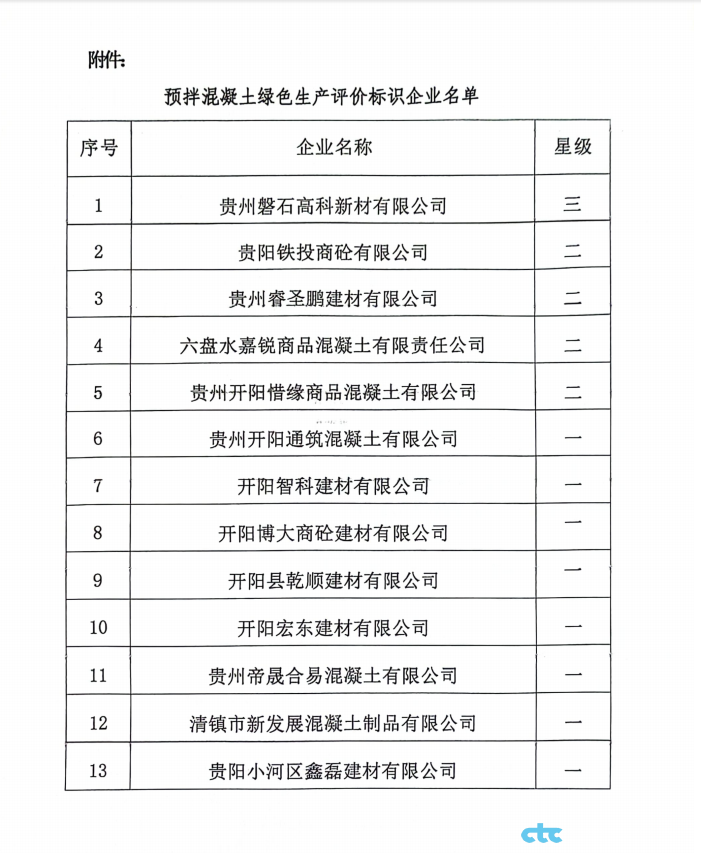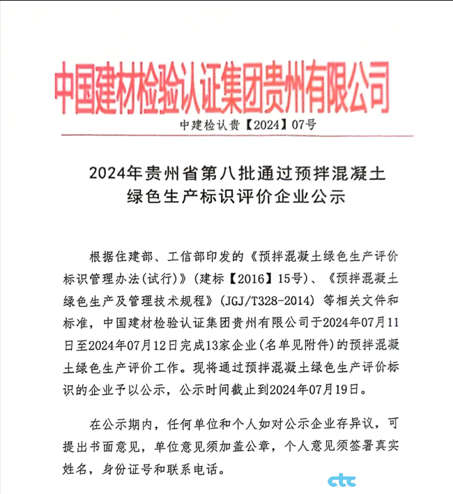 2024年貴州省第八批通過預拌混凝土綠色生產標識評價企業(yè)公示