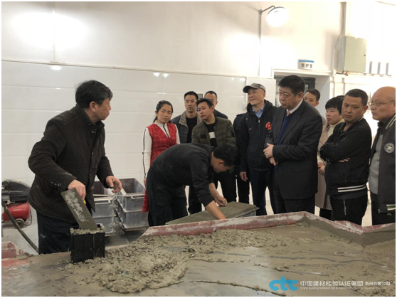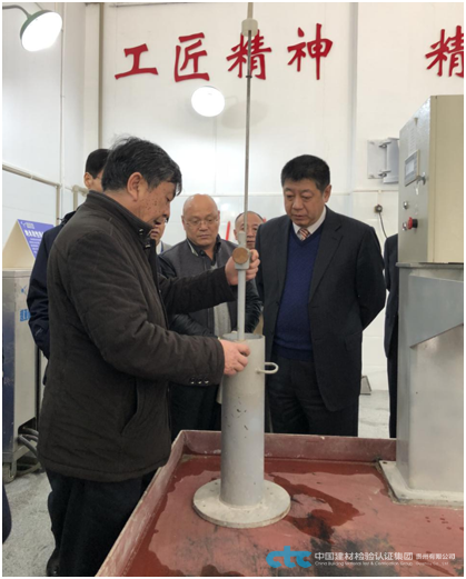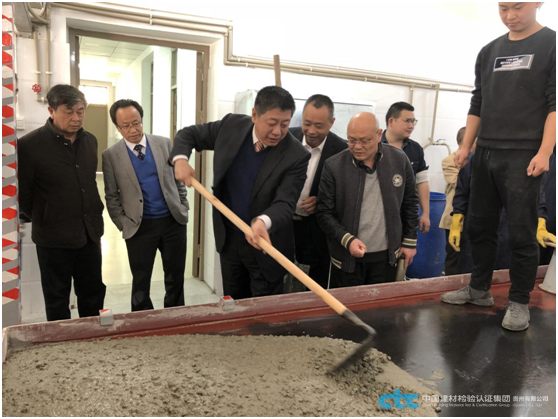 專家組觀看混凝土試配實(shí)驗(yàn)