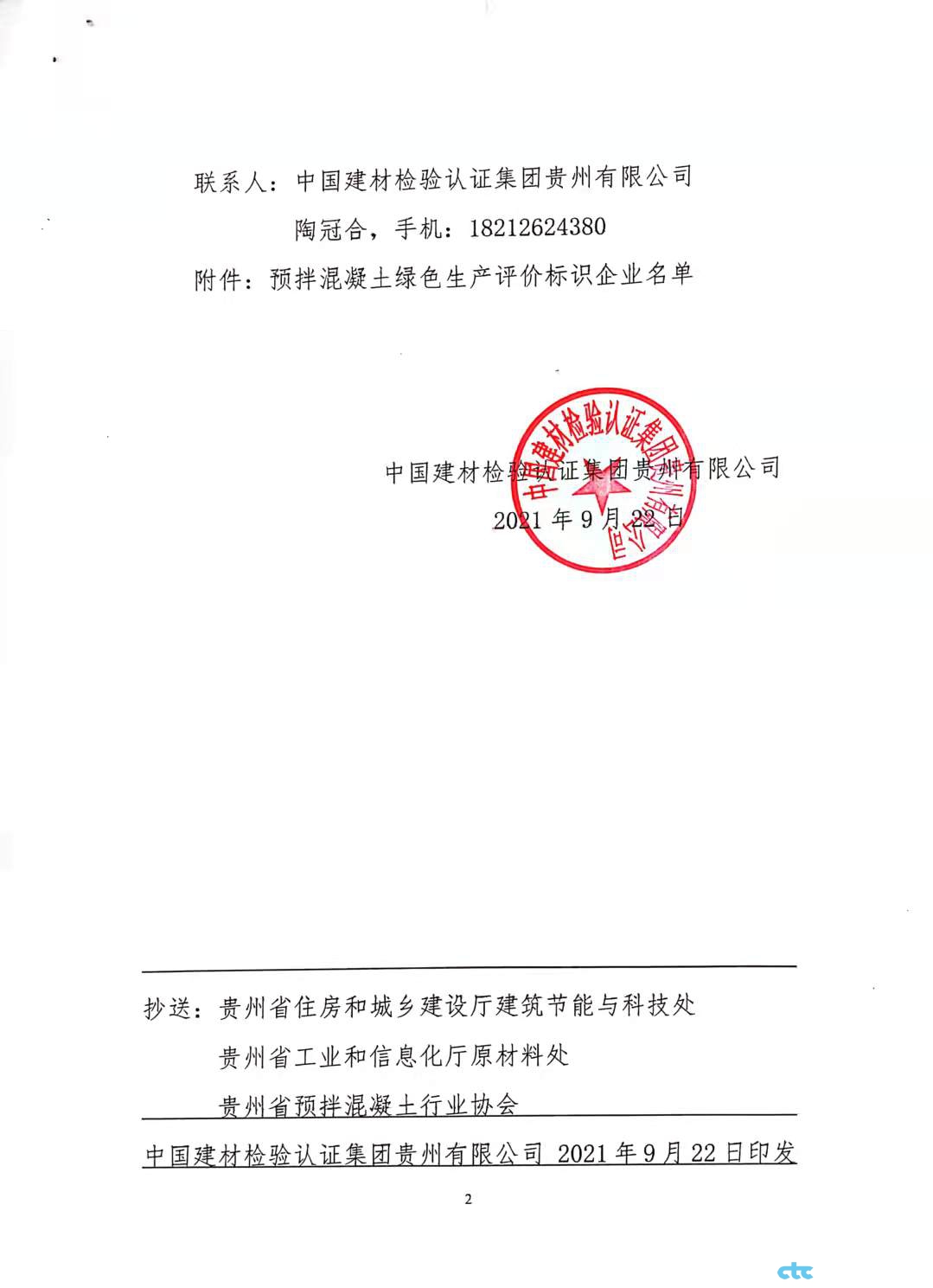2022年貴州省第六批通過(guò)預(yù)拌混凝土綠色生產(chǎn)標(biāo)識(shí)評(píng)價(jià)企業(yè)公示