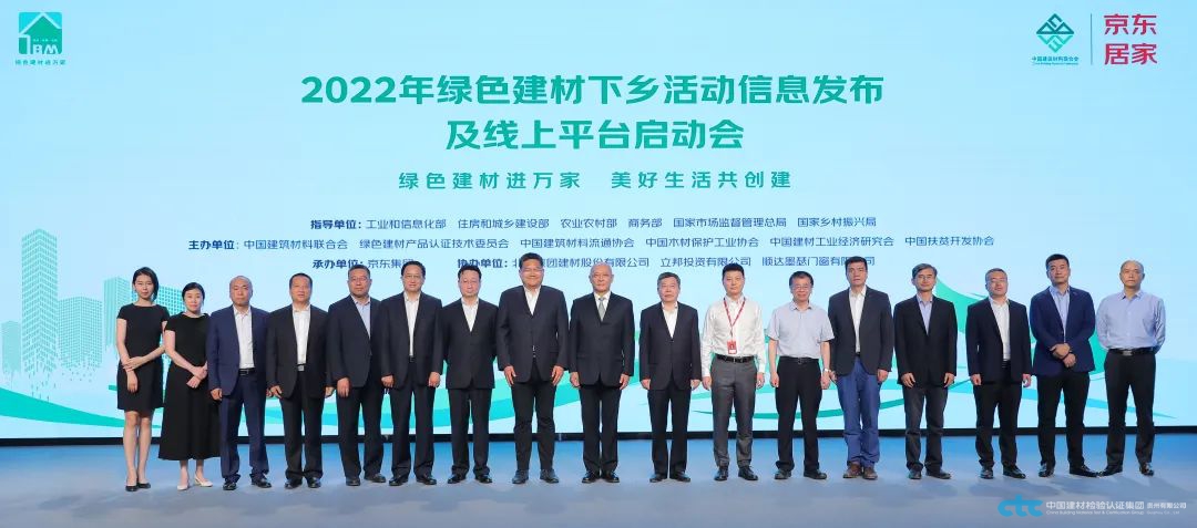 6月6日,由工業(yè)和信息化部、住房和城鄉(xiāng)建設(shè)部、農(nóng)業(yè)農(nóng)村部、商務(wù)部、國家市場監(jiān)督管理總局、國家鄉(xiāng)村振興局六部門指導(dǎo),中國建筑材料聯(lián)合會、綠色建材產(chǎn)品認證技術(shù)委員會、中國建筑材料流通協(xié)會、中國木材保護工業(yè)協(xié)會、中國建材工業(yè)經(jīng)濟研究會、中國扶貧開發(fā)協(xié)會聯(lián)合主辦的“2022年綠色建材下鄉(xiāng)活動信息發(fā)布及線上平臺啟動會”舉行。工業(yè)和信息化部原材料工業(yè)司副司長邢濤,農(nóng)業(yè)農(nóng)村部農(nóng)村社會事業(yè)促進司副司長、一級巡視員何斌,國家鄉(xiāng)村振興局開發(fā)指導(dǎo)司副司長、二級巡視員劉曉山,商務(wù)部消費促進司處長王勇,國家市場監(jiān)督管理總局認證監(jiān)管司處長丁兆國,中國建筑材料聯(lián)合會會長閻曉峰、常務(wù)副會長陳國慶,綠色建材產(chǎn)品認證技術(shù)委員會主任委員劉敬疆等領(lǐng)導(dǎo)出席會議。國檢集團總經(jīng)理朱連濱作為綠色建材下鄉(xiāng)活動全國技術(shù)支持機構(gòu)代表受邀出席。